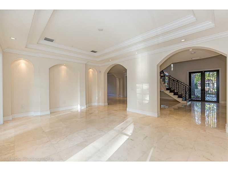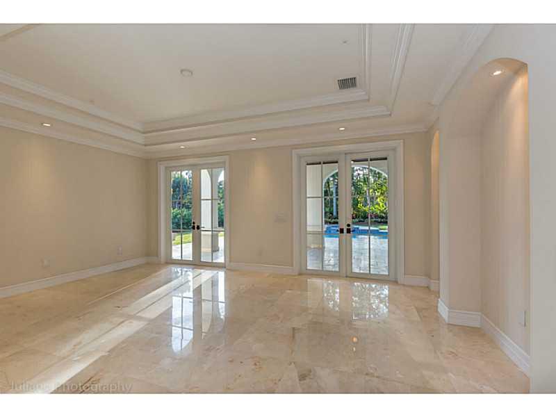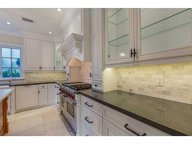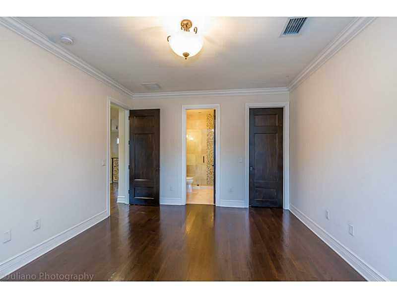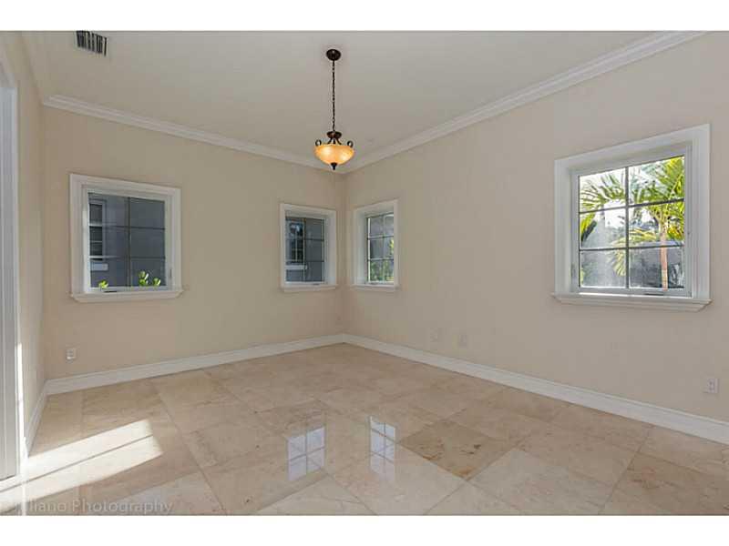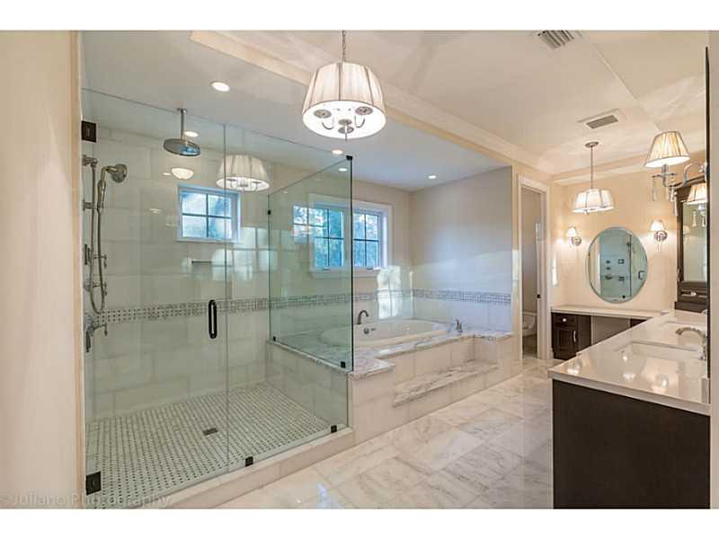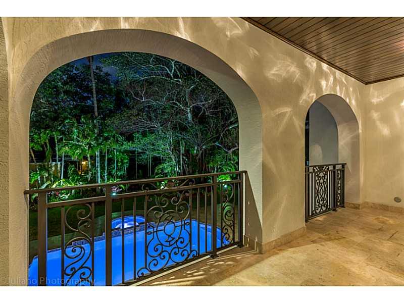 Rare Opportunity Brand New on triple+ lot on quiet Gables street, by Master Arch Eduardo Calil. All white bright transitional Med w/stone courtyard centered around grand Oak.Great flrplan w/living rm & kit/family open to large covered terrace,huge backyar d.3/3.5 dwnstrs & 3/3 up.Fab master w/2 masterfully builtout walkins,glamorous bath suite & large terrace. 6th room downstairs w/fireplace can be guest/den/office.High/coffered/wood clad ceilings,large impact w/doors, custom finishes,sec cameras,gas line.
