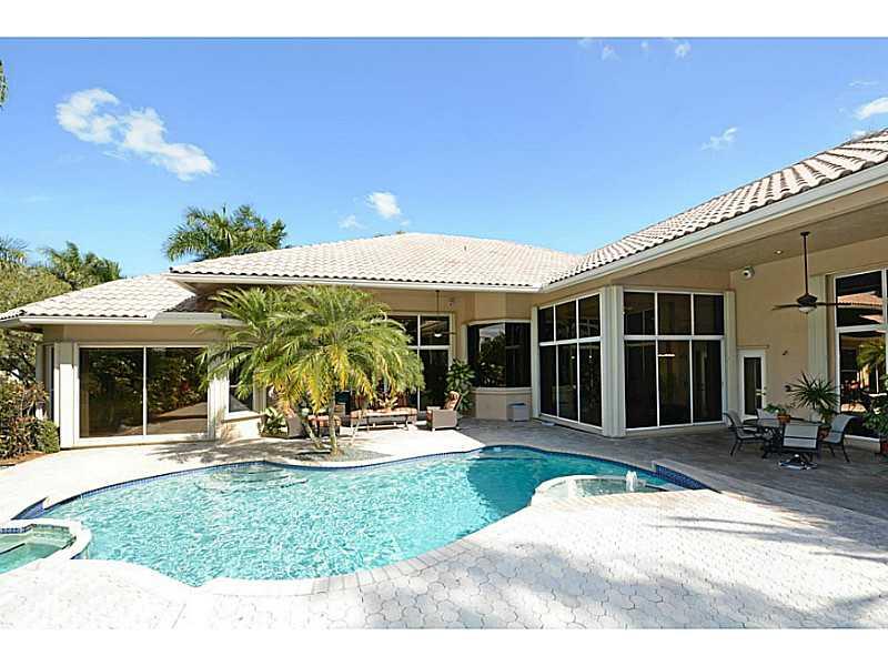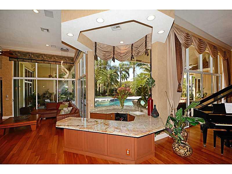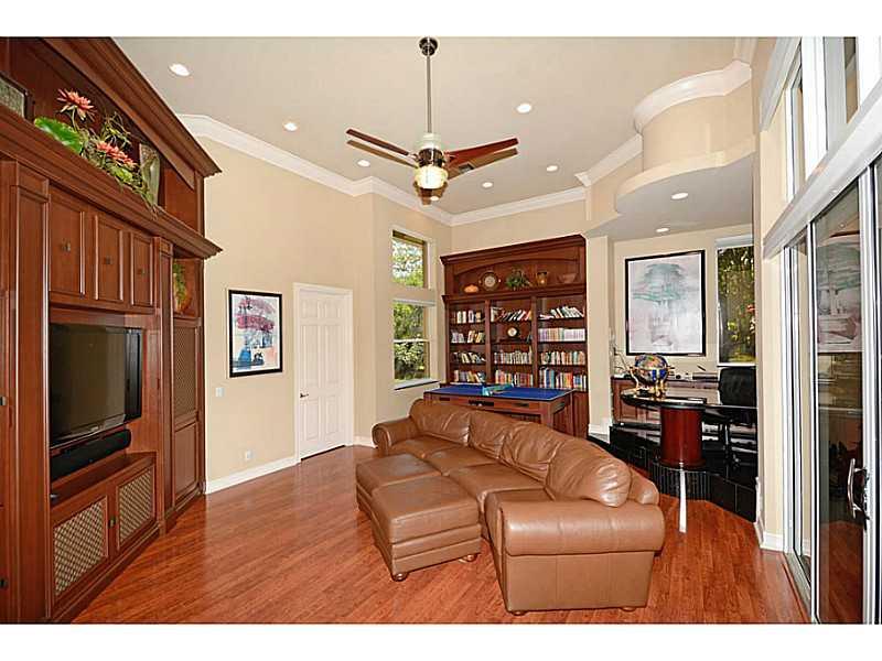 Lakefront estate w. over 4800' sq. of living area, 5BR/5FB/1HB plus office & Media Room w. custom wall unit & library. Gourmet kitchen w. granite counters, backsplash, center island, upgraded S/S appliances, incl. Sub-Zero refrigerator, 42" cherry cabinet s, under-cabinet lighting & huge pantry. Granite wet bar w. wine refrigerator & sink. Spa-like MBA w. granite counters, dual sinks & spa tub. Resort style heated pool/spa & patio. Real wood flooring throughout. Accordions shutters & backup generator.