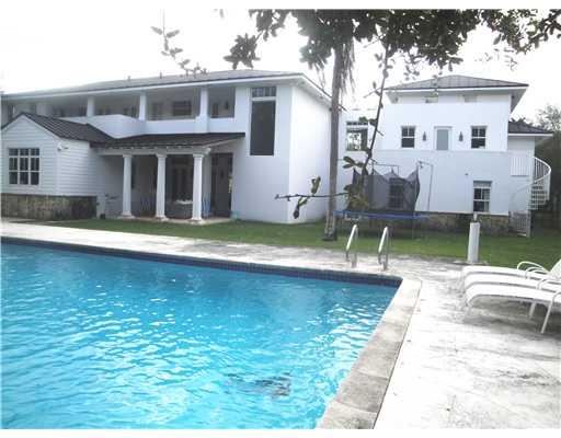 Enjoy family life in this Key West style with a Hamptons feeling home. Drive into the house set deep in the lot. It is ready to move in with wood floors/marble throughout. The kitchen is splendid with its black/white marble floors as well as walk-in and butler's pantry. Impact resistant glass and doors always fill the house with light. The pool is a few feet short of an Olympic size. Two terraces with summer kitchen enable great entertaining. There is plenty of yard left for playing or planting.
