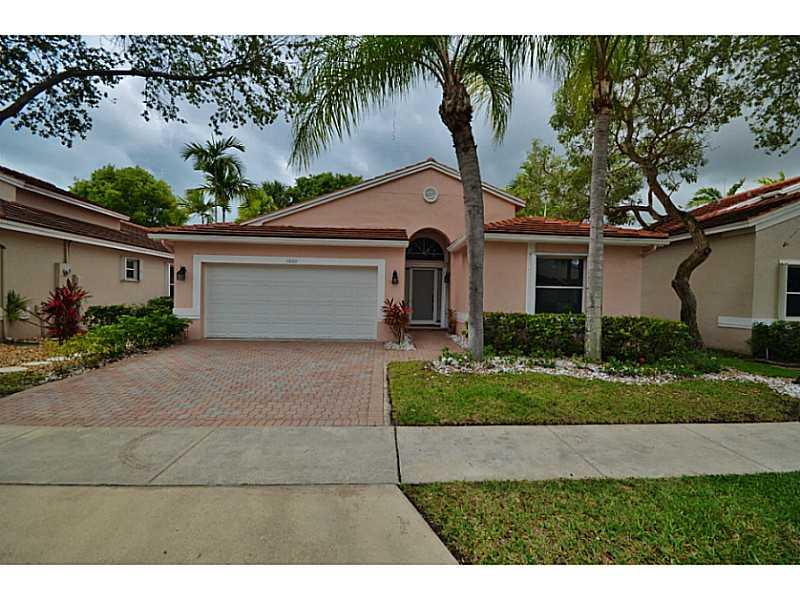 BEAUTIULLY MAINTAINED SPOTLESS home with wide lake views in quiet ENCINO of GRAND PALMS executive golf community. Spacious open floor plan with large MBR and split bedrooms for privacy. 3rd bedroom functions as office/media room with double door entry. Newer roof, AC & Washer/Dryer. 2 car garage with new Hurricane door in 2011. Perfect for retirees or families. Guard Gated with security patrols and on site HOA. Golf, schools, transportation, parks, hospitals, restaurants nearby! FLL & MIA 20 min drive!
