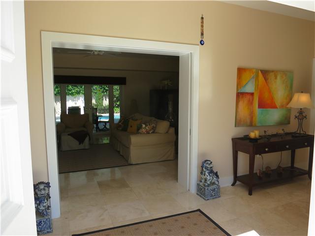 Move right in and enjoy all the ambiance of tropical elegant island living! 3 / 4 + den totally updated home featuring a see-through living room overlooking the covered terrace and private landscaped patio with full size, heated pool & outdoor BBQ area. The chef's kitchen is highlighted by a Miele stove with GE Monogram chimney hood, top-of-the-line Kitchen Aid appliances + large wine cooler. Marble flooring, all marble bathrooms, separate dining + spacious master suite. Beach Club membership inc.