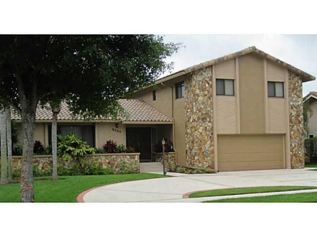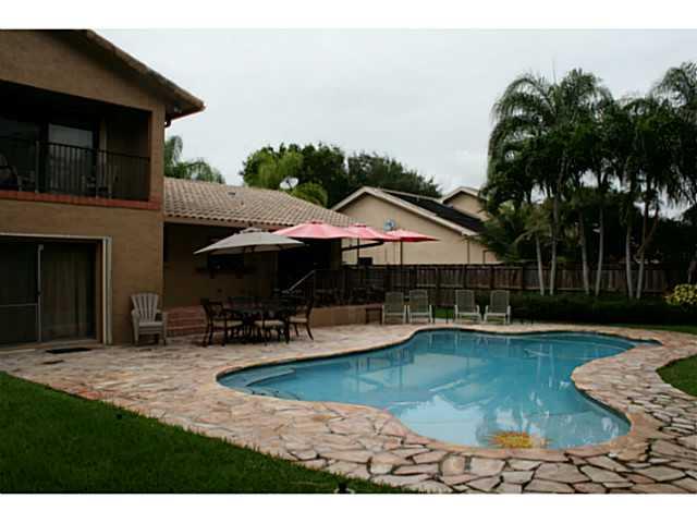 Beautiful Updated Home located in desirable Jacaranda Lakes! Open floor plan with vaulted ceilings includes 4 bedrooms upstairs and 3 full baths. Updated kitchen includes stainless steel appliances, granite, bar seating, an eat in area and pass thru to pa tio. Wet bar in family room with easy access from patio area. Back yard boasts Lush landscaping, large covered patio PLUS large pool surrounded by patio. Perfect for entertaining! Patio has access points from cabana bath, family room & dining room!
