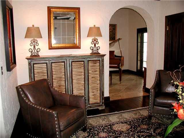 A rare find. Incredibly special Old Spanish in super prime location w/ original integrity intact, beautifully enhanced, maintained & restored. Foyer entry, large formal living room w/ fireplace, grand formal dining room opens to covered outdoor bricked en tertaining space/carport. Kitchen has original solid wood cabinets w/ separate butlers pantry & breakfast banquette. 2 spacious bedrooms, master opens to sunny office/den/nursery. Separate garage could be office/cabana. Room for pool. Some impact glass.
