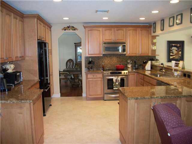 Lakefront, 4bed/3bath, oversized 2 CG, free form pool, over 1/3 acre lot, new dock (great fishing)...pristine condition..recently upgraded..new kitchen,(granite, Maple cabinets, appliances) new bathrooms, new windows and metal french doors... new Trane A/ C system...tile and wood floors..barrel tile roof...circle drive...extra long concrete slab (approx 1600' sf) N. side, (boat storage)fenced...full hurricane shutters for all the windows..security system..totally a move-in condition home..taxes $3700.
