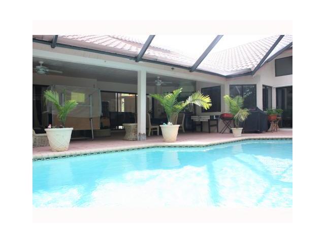 BEAUTIFUL 5 BED, 4 BATHS, NO NEIGHBORS BEHIND, OVERSIZE LOT, PORCELAIN FLOORS, RECENTLY RENOVATED BATHROOMS, UPGRADED KITCHEN, CABANA BATHROOM, SCREENED POOL