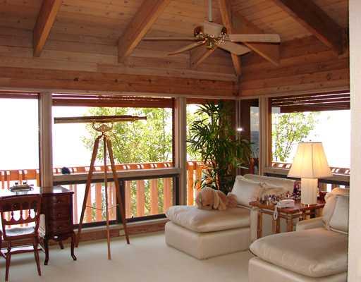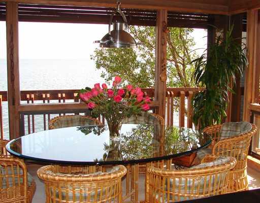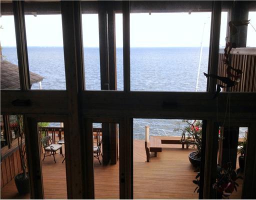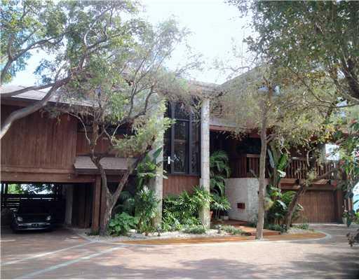 Extraordinary & unique, this Bay Front Architectural jewel features dramatic wood columns & beams accenting its impressive all glass, 2-story living areas with walls of stone & unrivaled Bay views. An inspiring master-suite sits alone atop this spectacula r home, complete w/ sitting area & private deck. Saturnia floors, a see-though fireplace, elevator, electric storm shutters, multi level decks, a beautiful pool, protected boat slip... all located at the very end of quiet, guard-gated street. Magnificent!