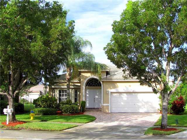Desirable Pembroke Isles home features high ceilings, open kitchen to the family room w/triple sliding glass doors that lead to the patio and a beautiful view of the low maintenance backyard, and a separate dining room w/ a bay window. Master has an extra bonus room, sliding glass doors that open the patio, and Roman tub in bathroom. Other bedrooms are right off the master, and are connected by a "Jack and Jill" bathroom. 2 car garage, accordion shutters.