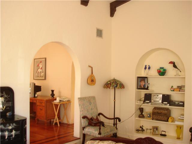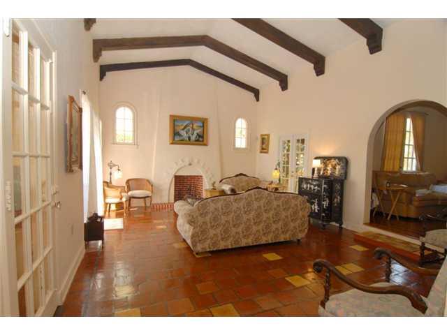 CHARMING SPANISH HOME WITH ORIGINAL FEATURES; AS YOU WALK IN YOU HAVE A PRIVATE FOYER, WHEN YOU ENTER THE LIVING ROOM IT HAS AMAZING WOOD BEAM HIGH CEILING & A FIREPLACE. A FORMAL DINING ROOM AREA WITH VIEWS OF THE BEAUTIFUL LANDSCAPING OUTSIDE & OF THE G OLF COURSE, VERY BRIGHT WITH PLENTY OF WINDOWS & FRENCH DOORS THROUGH OUT. THE MAIN HOUSE HAS 1 BED 1 BATH DOWNSTAIRS, TWO LARGE BEDROOMS & A MASTER BATHROOM UPSTAIRS WITH SPACE FOR A 2ND FLOOR TERRACE. A DETACHED 2 STORY COTTAGE, THAT CAN BE RENTED.