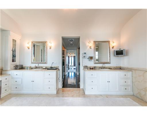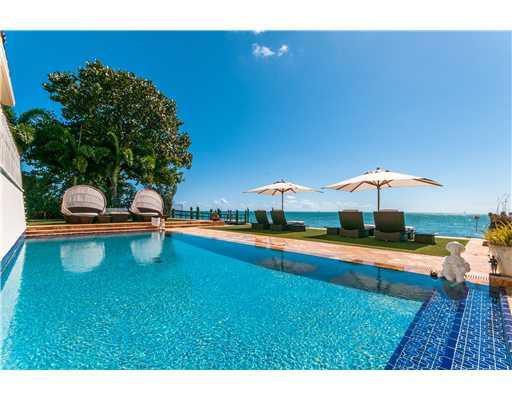 Magnificent bayfront residence offering unparalleled private water views. Meticulous detailing and world-class craftsmanship are some of the hallmarks found in this spectacular residence reminiscent of a European estate. Spacious covered pavilion and cust om designed outdoor loggia equipped with gas grill & table seating.Perfect for dining al fresco! Elect. boat lift. Interior appointments incl. arched collonades,marble & wood floors,volume coffered ceilings & impact resistant French doors & windows.