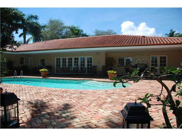 140'on water,500ft dock with 15,000lb capacity electric boatlift. Dock & 140' seawall built & fully permitted in 2004. Dock covered with Ipe wood. 5bdrm 4bths, updated kitchen & baths. Chicago brick pavers throughout backyard & pool with beautiful landsca ping. Wide canal with access to bay in minutes. Lrg family rm with built-in wood entertainment center. Wet bar with ice maker, black granite tops & glass shelves, Home generator. Beautiful lot to build your dream home with architectural plans. As-is sale.