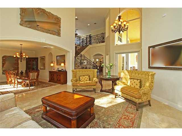 Magnificent Courtyard Style home in the exclusive development of Enclave in Grand Palms Country Club! This Spectacular home features amazing golf views, 5 bdrms plus den, 5.5 baths. Detached guest house. Beautiful iron staircase, crown moldings and decora tive trim throughout, upgraded carpet in bedrooms and neutral marble flooring in all living areas. Home theater sound system throughout the house and in the courtyard. Master bedroom on the first floor. Courtyard area with outdoor kitchen, pool and spa.