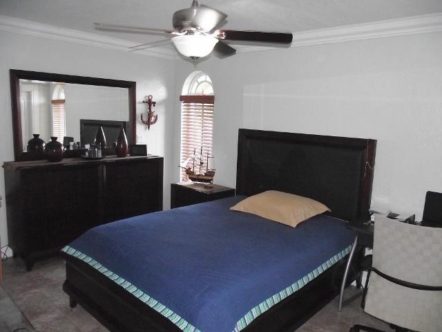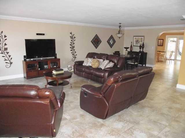 Splendid remodeled 4bed/3bath + Den/Office provides ample open living spaces.Updated w/quality finishes, this home features wood kitchen cabinets w/granite counters, impact windows,remodeled baths,tile floors, crown moldings,new A/C, freshly painted & rea dy to move in. Large lot great for boat storage & more. Covered terrace ideal for entertaining. Garage converted to 4th room + bonus wet bar area with access to kitchen/breakfast area.Large fenced patio has room for pool.Normal sale and easy to show.