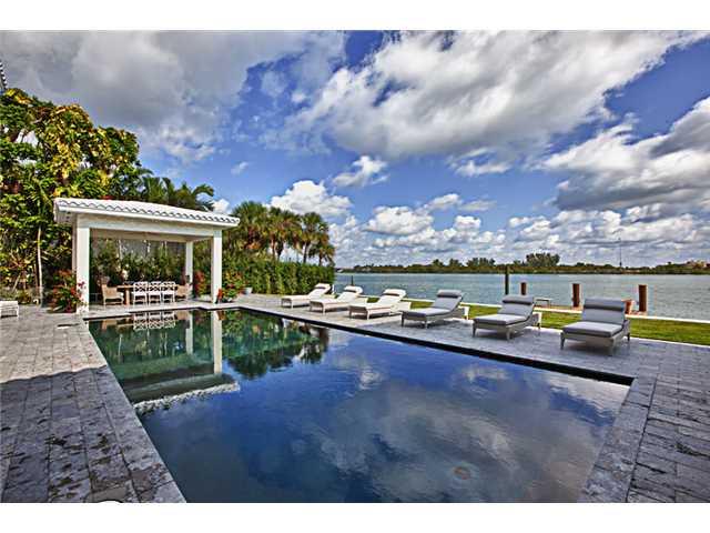 5BR/6+2BA classic Miami Beach two-story waterfront home on prestigious island. Contemporary & elegant interior, marble & hardwood floors. Exquisite, luxurious finishes & appointments throughout. Very lg master suite w/office, morning kitchen, walk-ins, lg . bath. Loggia flanked courtyard w/sep. gym house, lg. kitchen w/Miele & Sub-Zero stainless steel appliances, mini bar w/built-in tap. Outdoor is great for relaxing or entertaining, covered areas, pool, yard space, dock. Most rooms w/views. *SF per owner.