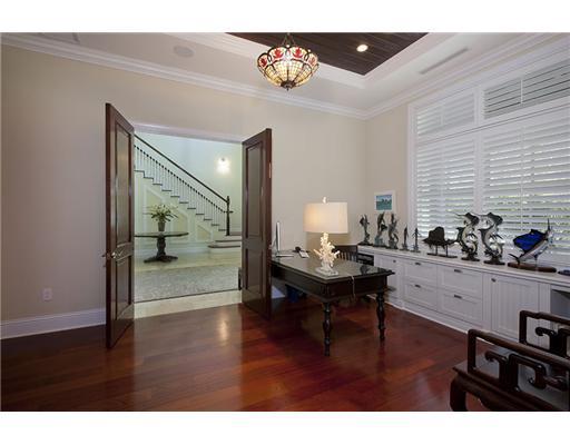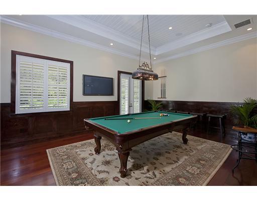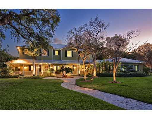 Relaxed yet sophisticated Key West inspired home. Over an acre of tropical paradise designed by Bell + Aqüí. Soaring ceilings & well-designed floor plan perfect for real South Florida living. Marble & cherry floors, lg living spaces, gourmet Viking kitche n & spacious master + fireplace & private balcony. Elan sound, lighting & security system. Built in salt water fish tank in family room. Wraparound keystone porch & patio boasts summer kitchen/bar. Resort style pool & Jacuzzi. Home Generator.