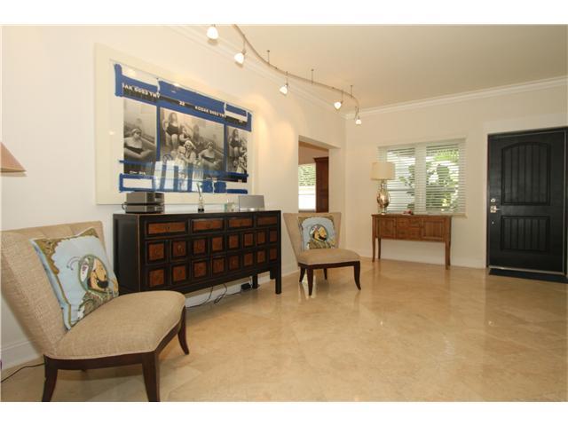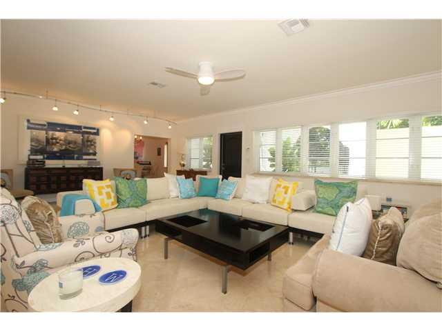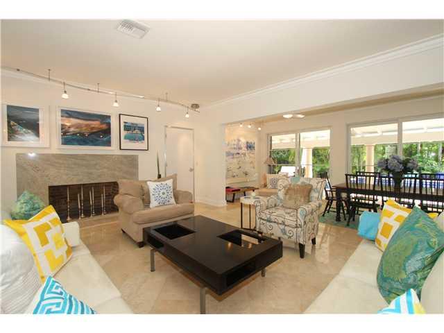 Enter through a private courtyard into this stunning home located on a quiet tree lined street. Light filled living spaces with volume ceilings. Totally renovated with attention to detail including a new chef's kitchen with state of the art appliances. Ma rble floors and impact windows throughout. 3BR/2.5BA in the main house & a 1BR/1BA detached cottage. Walls of glass open to expansive covered terrace & lush private gardens surrounding the tropical pool with waterfall.