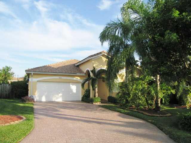 GORGEOUS 1 STORY MEDITERRANEAN IN DESIRABLE GUARD-GATED GOLDVUE ESTATES! WONDERFUL FLOOR PLAN FEATURES 4/3, 2 CAR GARAGE, EXTENDED DRIVEWAY, BEAUTIFULLY LANDSCAPED OVERSIZED LOT ON CUL-DE-SAC W/FRUIT TREES & HEATED POOL!! SPACIOUS MASTER SUITE, FORMAL DIN ING, SEPARATE LIVING, LARGE FAMILY ROOM OPENS TO IMPECCABLE WHITE GOURMET KITCHEN & COZY COVERED TERRACE W/PAVERED POOL PATIO. BEAUTIFUL NEUTRAL TILE & WOOD LAMINATE FLOORING THROUGHOUT. EQUIPPED W/ACCORDION SHUTTERS, JUNGLE JIM, STORAGE SHEDS & MORE!!