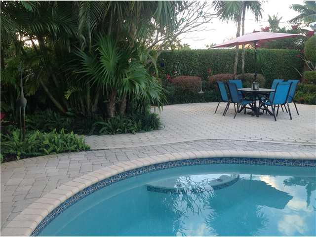 Bright and cheerful completely remodeled home 2 bedrooms 2 bath pool home with 1 car garage.Custom built-ins.seperate laundry room with 2nd refrigerator.Tastefully updated bathrooms with marble.Large master bedroom with walk in closets. Custom design salt water pool. Large pavers patio sitting area with beautiful landscaped.Private fenced backyard.Open ktichen with bar sitting area, corian countertops and stainless steel appliances and italian stone floor.Plantation Shutters.wood floors. recessed lighting