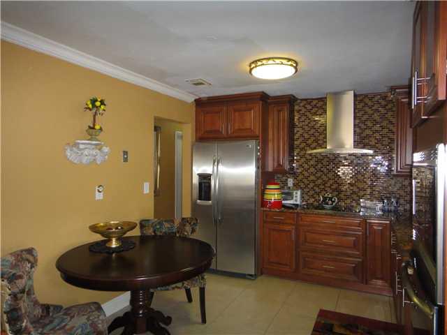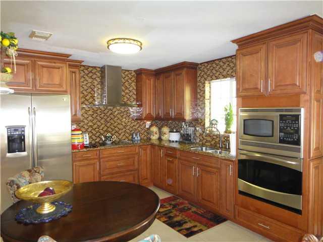 Beautiful home all remodeled & centrally located with mango, mamey & coconut trees. 18x18 tile throughout, crown moldings, texture walls, baseboards. Kitchen all done 2 yrs ago, top of the line stainless steel appliances. Roof completely replaced 4 yrs ag o, same with all windows & doors. House bigger than tax roll; garage was converted into a spacious family room. Pleasant back yard with lots of shade & plants; there is a roomy cottage with AC; can be use in many ways. Regular sale! Easy to show.