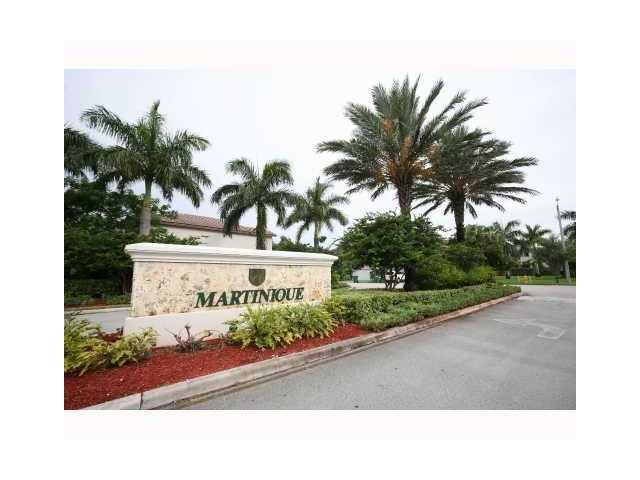 Elegant and in mint condition, 2-story, Mediterranean style coach home in Doral Isles Martinique. Spacious 3 bedrooms, 2.5 baths, with a 1-car garage. Tile floors downstairs and wood upstairs. Open kitchen has granite countertops, wood cabinetry and sna ck counter. Huge master bedroom and walk-in closet. Master bath is large with separate shower and roman tub and private toilet/bidet area. Gated community with resort style amenities, parks, and 24-hr. security.