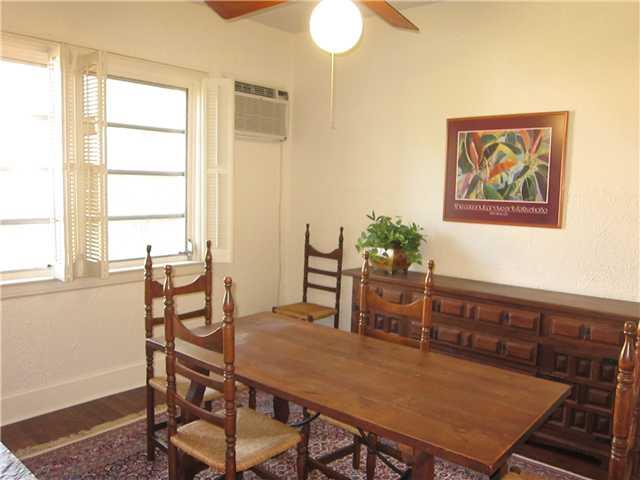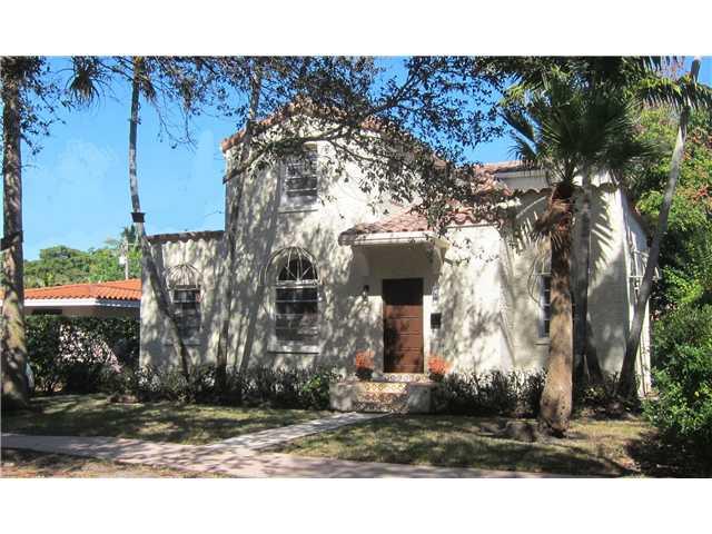 Charming 2-story old Spanish in the Golden Triangle of Gables(between Anastasia to the north and Bird to the south,Granada to west & Toledo east).On a block long street in one of the safest areas of CG. Enter foyer, LR with fireplace and dining room beyon d. Small den. Kitchen with breakfast area. Two bedrooms down with hall bath,two bedrooms up with hall bath; master has extra sink in dressing area & walk-in closet. Wd flrs.Garage in rear but narrow drive to it.FIRM PRICE. Needs central a/c. Rm for pool.