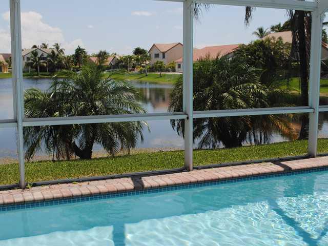 Pristine and peaceful. This charming direct lakefront gated community residence. Great model. Split, open floorplan incl. huge master suite. Three bedrooms addtl. 40 foot screened solar heated pool. Two year old Trane AC. Accordion shutters. Newer wool be rber in bdrms, w/d and wtr heater. Great Schools, Immed Occupancy.