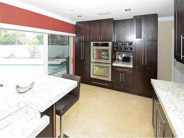 Fabulous 4/3.5 family home on corner lot w/circular driveway & heated pool. Desirable Emerald Hills locale within walking distance to houses of worship &schools. Limestone floors,Impact windows & doors, luxurious chef's dream kitchen w/tons of granite cou nterspace,handsome cabinetry,high-end Stainless Steel appliances, pull-outs & self-closing drawers. Newer a/c's, new gutters, newer fence & security alarm system. Open & bright w/pool view from kitchen & family room. Pictures don't do it justice.