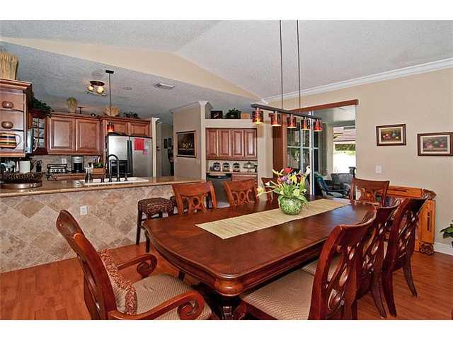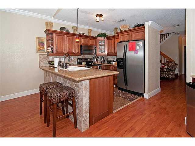 WoW! This house has it all! tastefully updated 4/3 home, 4 mos. new 27x22 pool w/waterfall, jets & swimouts. Kitchen w/wood cabinets, butler's pantry, stainless steel appliances, granite. laminate flooring everywhere,remodeled bathrooms with designer tile & granite. Appointed with crown molding & textured walls. Spacious fenced yard, travertine walkway, patio & deck. great for entertaining. Accordion shutters. Garage has a/c & can be used as bonus room or converted back. Community pool. A MUST SEE!