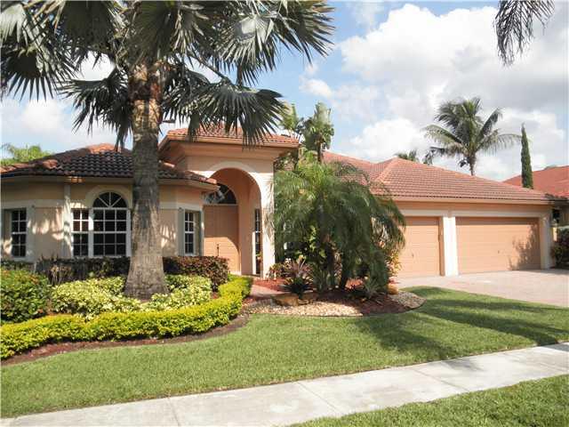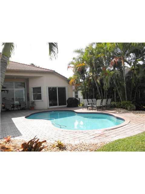 Georgeous 1 story home with resort like backyard, pool and amazing 1 mile view! 4 bedrooms plus Den and 3 baths, gourmet kitchen, 42" wood cabinets, stainless steel appliances, granite countertop, wood floor in Master, accordion shutters, and much more! L ocated in a quiet street next to a cul-de-sac and very close to the Club House.