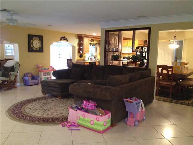 GORGEOUS,SPACIOUS 3 BED,2 BATH ONE LEVEL HOME IN TRANQUIL PLANTION HILLS. OPEN FLOOR PLAN WITH GREAT FLOW. TILES EVERYWHERE EXCEPT WOOD FLOORS IN BEDROOMS. HUGE FENCED BACK YARD WITH BUILT IN GRILL AND PAVED PATIO AREA & SECLUDED FREEFORM POOL. LGE KITCH EN,WOOD CABINETS,GRANITE,ISLAND W/STORAGE & SEATING. FORMAL DINING ROOM. SHOWS WELL.