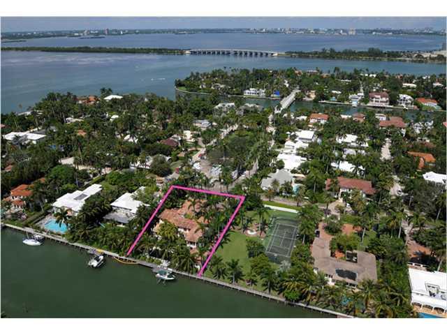 Enchanting Mediterranean compound. Beautifully designed w/French doors, large windows, verandas, terraces, focal fountains & breathtaking courtyard entry.120ft waterfront w/dock & pool pavilion. Lavish Master w/His & Hers baths, sitting room & 4 terraces . Handsome custom millwork. Huge kitchen w/adjoining family room. State of the art smart-house. 1 of the best & rarest on the market. On gated island, close to world renown S. Beach. Also available w/ second lot. Total 48,000sf w/240ft waterfront $12.5M.