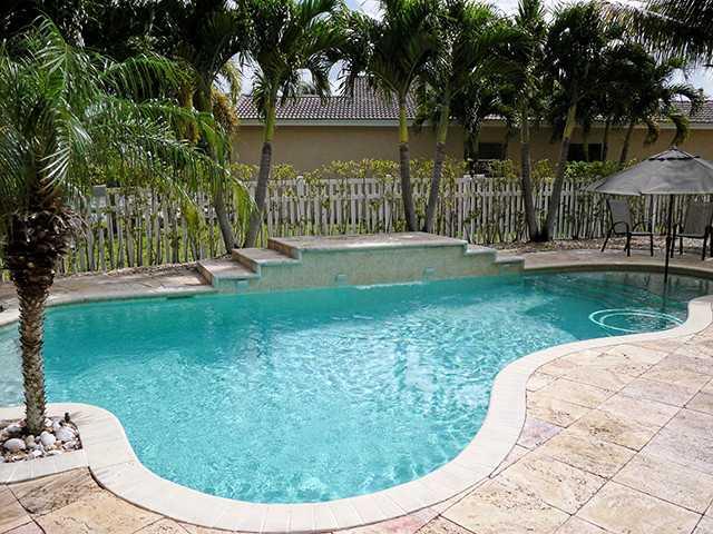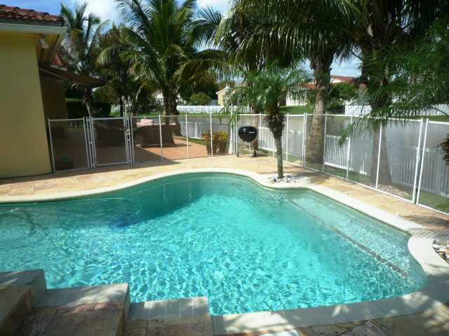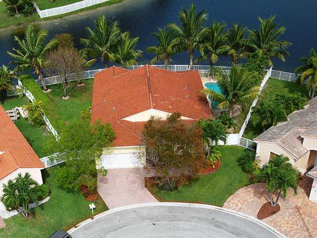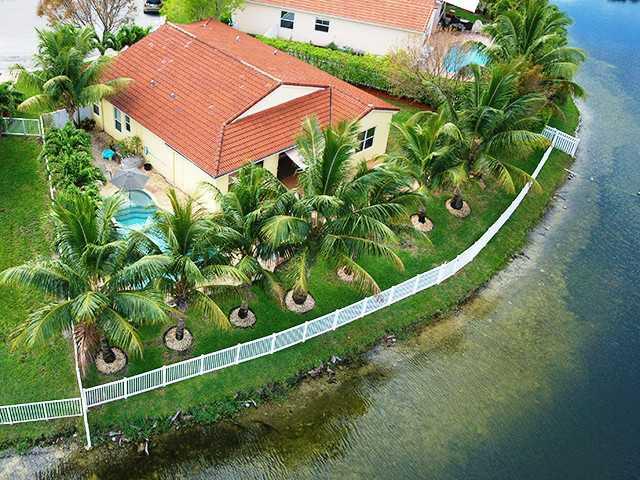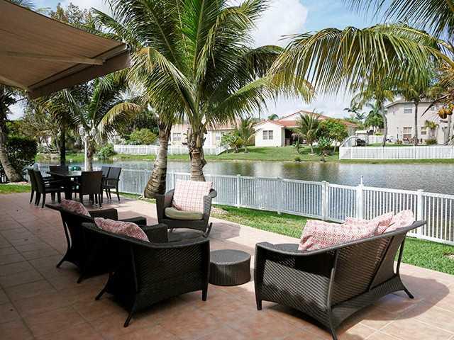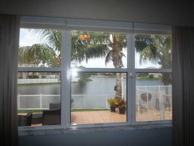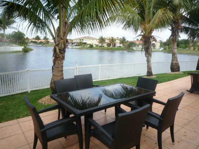 Superb 1 story, 4 bedroom, 2.5 bath waterfront, pool home on big pie-shaped, cul de sac lot in gated Palm Cove of Monarch Lakes. Upgraded throughout including gourmet kitchen with Staron solid surface counters, crown molding, closet built-ins, tile throug hout. Sliding glass doors and windows open to tropical paradisew/beautiful palms, gorgeous lake views, oversized patio perfect for entertaining, refreshing salt-water pool, covered patio w/extended awning & fenced yard. Walk to "A" rated elementary school