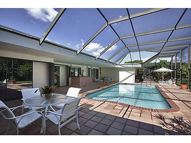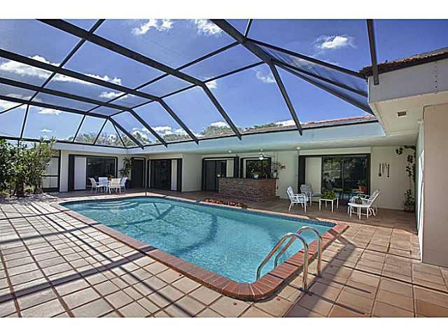 Spoil yourself with an immaculate home in Pinecrest on over half an acre corner lot! This home has a great split floor plan, formal living and dining rooms and a large family room. The well equipped kitchen offers great views to the outside as well as a b reakfast area. The master bath has recently been renovated. Large screened enclosure with a pool, outdoor bar and lounge area, perfect for entertaining. 3 year old roof. 2-car garage and long circular driveway. Top schools. Don't miss this opportunity!