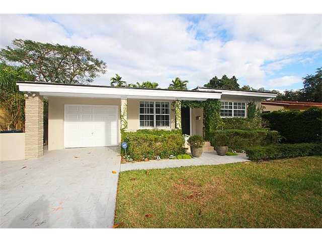 This beautifully updated & spacious 3 bedroom/2 bath home in Coral Gables is a Must See!. Featuring maple wood & porcelain tile floors, remodeled kitchen with custom cabinetry and stainless steel appliances, renovated bathrooms, large walk in closets, imp act windows, and a new roof. Split bedroom plan, large family room with high beam ceilings, one car garage, and new front yard landscaping.