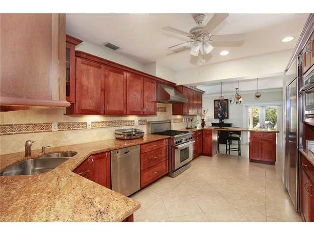 This elegantly remodeled South Gables 5/4, pool home offers incredible features like gorgeous wood floors, designer open kitchen w/SS appliances, luxurious master suite w/volume ceilings, his and hers master bath and walk-in closets. The spacious social a reas have beautiful views of the yard and heated pool making the house perfect for entertainment. A split plan design presents one en-suite room and master on one side and one en-suite and 2 bedrooms plus bath on the other.