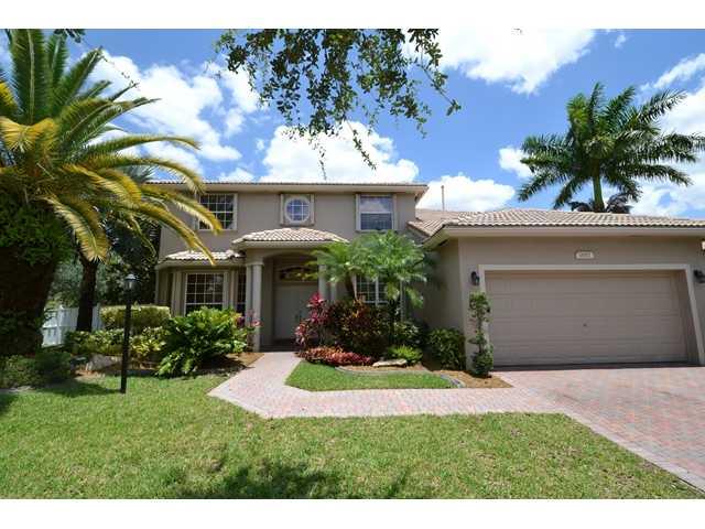 Lovely 5 Bed, 3 Bath, Santa Barbara Model Home located on a Large Fenced Corner Lot in Prestigious Pembroke Falls -- Cascades Executives. Features: Open Kitchen w/Granite Countertops & Gas Stove, Spacious Second Floor Master Bedroom w/His & Hers Walk-in C alifornia Closets, Open Floor Plan w/Library, Custom Moldings, Built-ins, & Lighting Throughout, Patio w/Natural Gas Hook-Up for BBQ, Accordion Shutters, Tropical Landscaping & Room for a Pool. ***New High Efficiency A/C Units & Gas Water Heater***