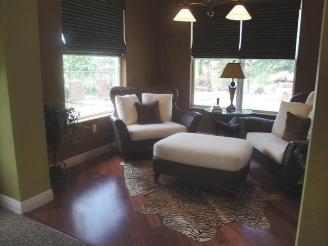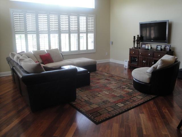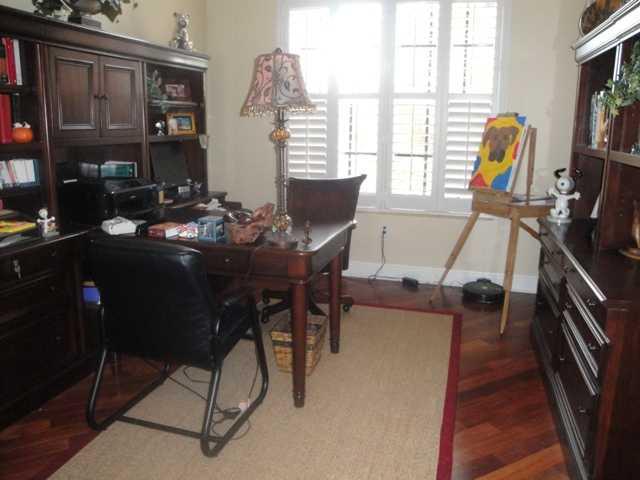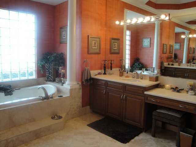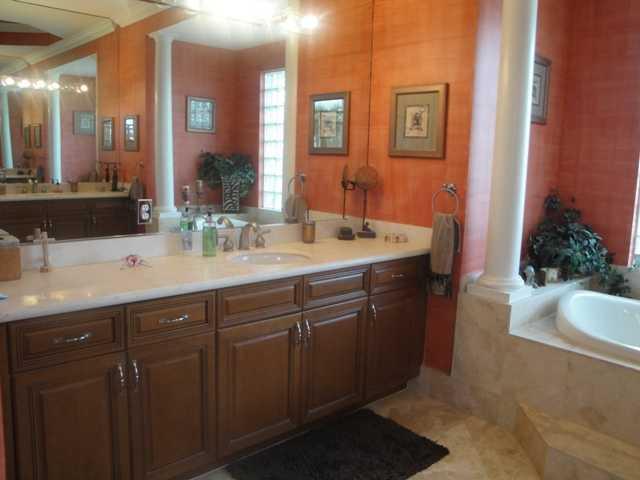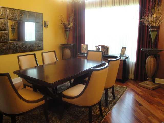 LOVELY SPACIOUS UPDATED HOME IN GATED COMMUNITY W/LOTS OF UPGRADES! 4 BEDROOMS PLUS DEN W/4 BATHROOMS; BRAZILIAN WOOD FLOORS, GOURMET KITCHEN W/SS APPLIANCES, GRANITE COUNTERS & BACKSPLASH; LARGE FORMAL DINING ROOM; WINE RACK BUILT-INS; FRENCH DOORS; BAH AMA SHUTTERS; CROWN MOLDING; MASTER BEDROOM HAS SITTING AREA; MASTER BATHROOM HAS ROMAN TUB & MARBLE FLOORS; COVERED PATIO OVERLOOKING LAKE & HEATED POOL W/ROCK WATERFALLS, SLIDE & SPA; CHICAGO PAVERS; CIRCULAR DRIVEWAY & SO MUCH MORE!