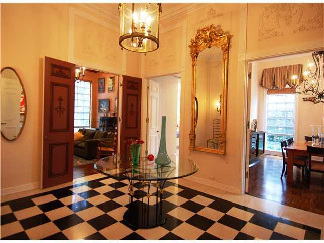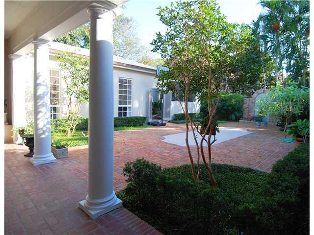 Unique architectural gem on coveted Santa Maria Street on Riviera Golf Course this 4061 sq.ft.* 3/3.5 offers 15' tall ceilings, classical central courtyard open to sun & stars and flanked by a wide veranda with Doric columns. Elegant foyer, library and ma ster bedroom have elaborate 24" deep dentil crown moldings. Modern eat-in kitchen w/ gas range, SS appliances & granite countertops. Large formal living rm, formal dining rm, very large master suite. Walnut floors. 2 car garage.*SQ.FT.per owner/architect