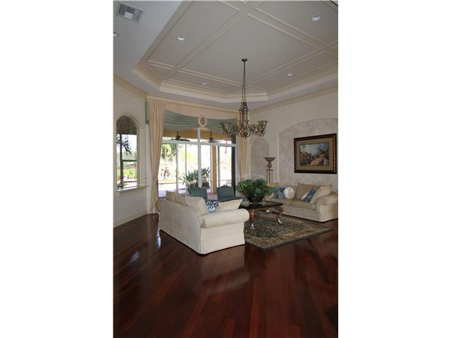 The model home of the Riverstone Development. Stunning water view, salt water pool with Jacuzzi and stone water slide, lush tropical landscaping. Coffered ceilings, crown molding and custom window treatments throughout. Beautiful light fixtures and chand eliers, his & hers master bathrooms, walk in closets and pantry, home movie theater & recreation room with pool table. Kohler Generator & accordion hurricane shutters. Competitively priced, immaculately maintained home. See attachments for floorplan.