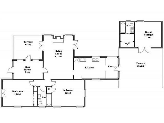 QUINTESSENTIAL GABLES OLD SPANISH - TWO BEDROOM/1 BATH IN MAIN HOUSE WITH A SEPERATE 1/1 GUEST COTTAGE.. HIGH CEILINGS, BIG WINDOWS, FRENCH DOORS, LARGE FOYER/SITTING ROOM, FIREPLACE, NICELY SIZED BEDROOMS, UPDATED BATHROOM. LOVELY SIDE TERRACE WITH ACCES S FROM LIVING ROOM AND FOYER - WONDERFUL FOR ENTERTAINING. TWO BEDROOM/1 BATH IN MAIN HOUSE WITH A SEPERATE 1/1 GUEST COTTAGE. BACK PATIO MAKES A NICE CONNECTION BETWEEN MAIN HOUSE AND COTTAGE. DESIRABLE GABLES ADDRESS ON LOVELY, TREE LINED STREET.