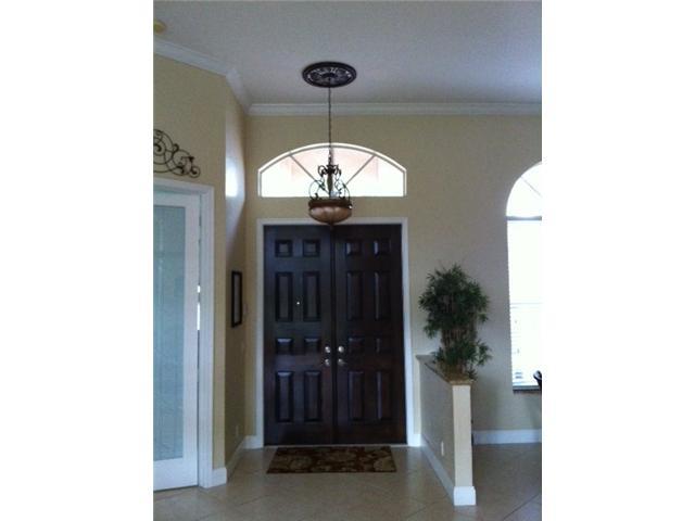 This 1-story 5/3 Model-Like home in desirable Cove III in Weston boast a professional landscape,an elegant entry w/ high vaulted ceilings, a beautiful kitchen w/stainless steel appliances and 42" wood cabinets overlooking a large family room & breakfast nook. Many upgrades include granite in kitchen and bathrooms, built-in closets, tile & laminate wood flooring & designer lighting, crown molding & french doors just to mention a few ! Large lot w/room for pool.Property won't last,it is move in ready !