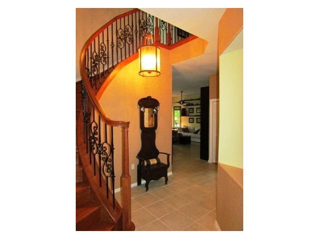 Spectacular custom home in The Estates. Breathtaking custom wood and iron spiraling staircase, Huge open kitchen with center island and custom cabinetry, Huge family room, Huge Master bedroom with sitting area and crown molding, Large Master bath with rom an tub, Large 2nd story terrace off of master, formal dinning room, custom pool surrounded by a tropical oasis of lush lanscaping. Very private yard with covered terrace, dual central AC systems, Home in prestine conditions.