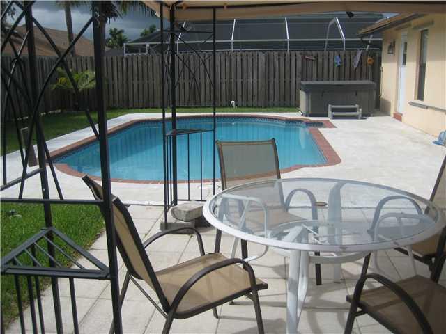 LOVELY SINGLE FAMILY HOME, THREE BEDROOMS, TWO BATHROOMS, VERY WELL KEPT HOME, UPGRADED KITCHEN WITH BREAKFAST BAR, OPEN FLOOR PLAN, VERY NICE SWIMMING POOL REFINISHED IN 2003, HOT TUB IN GOOD CONDITION, NICE CANOPY ON THE PATIO, ALSO A VEGETABLE GA RDEN, HURRICANE PANELS, GARAGE DOOR REPLACED IN 2008, NEW ROOF REPLACED IN 2006, FENCE REPLACED IN 2006, NEW A/C REPLACED IN 2012,...SPRINKLE SYSTEM.... AND VERY CLOSE TO SAWGRASS MALL AND HIGH WAYS.....EZ TO SHOW....