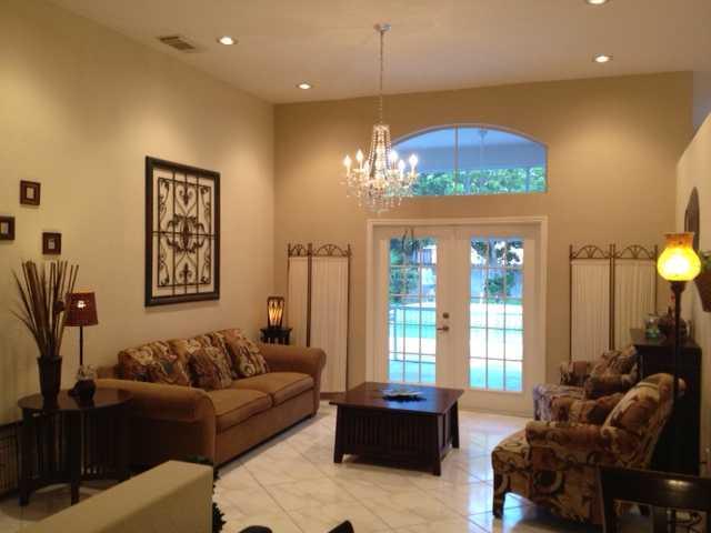 Desirable model one story home . Fenced backyard. Screened porch, sparkling pool, guarded gate. Kitchen opens up to family room. Living & dining room w vaulted ceiling and a sliding glass door to the porch, pool & back yard. split floor plan, all tile floors. Master bedroom w/walking closet, separat tub and shower, Dual sink. 2 car garage and big driveway.
