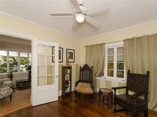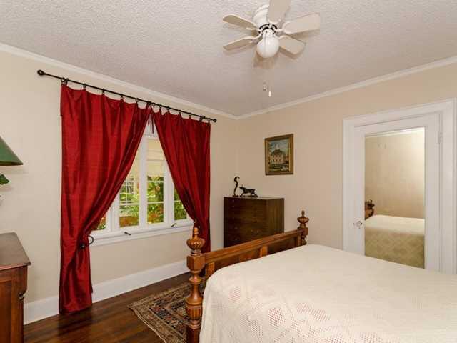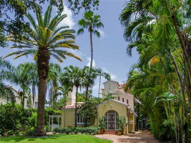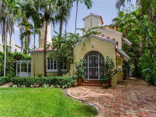 Quintessential 1923 Old Spanish rich with architectural detailing on one of the prettiest streets of Coral Gables— has all the curb appeal of a storybook home! Filled with light it offers a formal living rm w/fireplace, dining rm and a spacious kitchen wi th breakfast room or den. Two bedrooms downstairs w/bonus room, master upstairs. Oak floors throughout, unusually large closets. Spacious backyard lined w/brick pavers offers a peaceful retreat by the fountain or the perfect entertainment area. Delightful