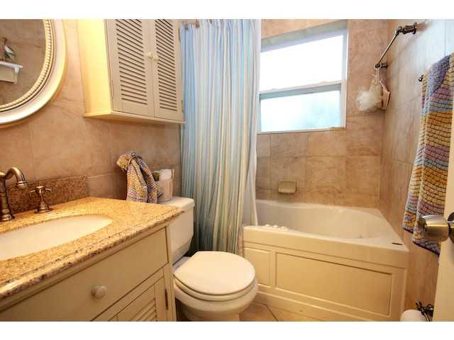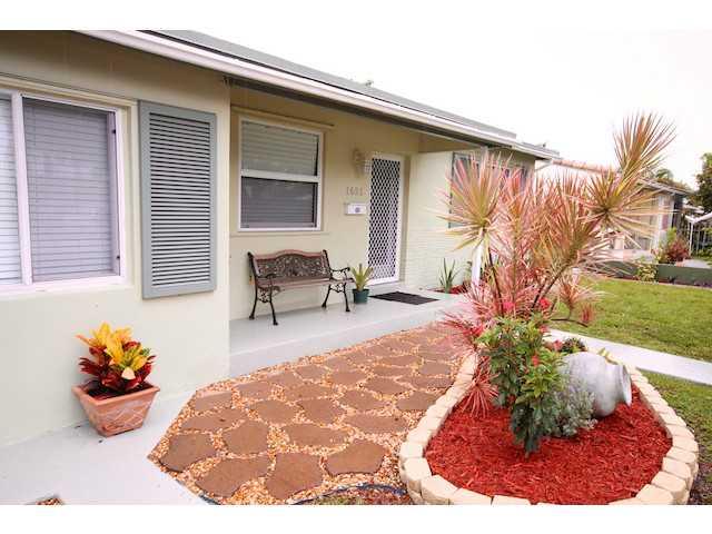 A STONE THROW AWAY FROM HOLLYWOOD BEACH! Great home w/ ITALIAN PORCELAIN diagonally installed in the living area and master suite. 2 bedrooms w/ Berber carpet. 2010 kitchen w/ GRANITE COUNTERS, wood cabinets, 2013 range & micro, 2010 dishwasher & refrig erator. 2010 bathrooms with high-end vanities, floor to ceiling tile and JACUZZI in main bathroom. Also, IMPACT RESISTANT GLASS front door and French doors, 2012 CENTRAL AIR, 2013 water heater, 8x10 shed, fence, LARGE YARD and fruit trees. NEAT AS A PIN!