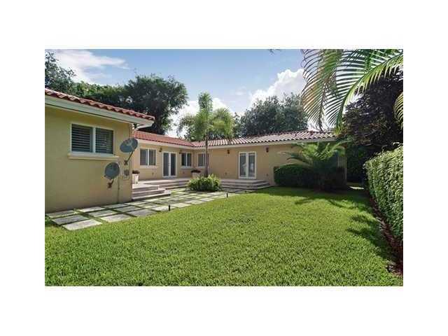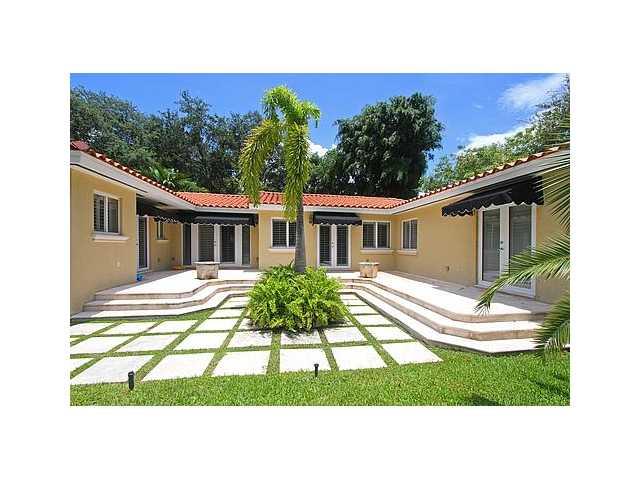 This exquisitely updated property is located on a beautiful tree-lined street in Coral Gables. Foyer entrance leads to a vaulted ceiling living room that features a working fireplace. French doors open to an expansive keystone patio area, with room for a pool. Magnificent Brazilian cherry wood floors and California shutters framing the windows are featured throughout the home. A family room adjoins the perfect cook's kitchen with top of the line appliances enhancing a charming breaksfast area.
