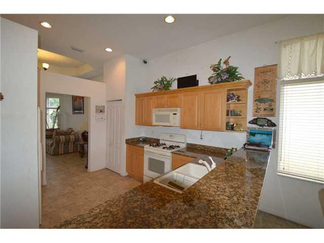 The Catalina-The largest 1 story in the Santa Barbara Collection in Laguna Isles-3 Beds and 2.5 Baths with an interior laundry room! Formal Living and Dining Rooms up front and a HUGE Family room off the kitchen that features GRANITE tops and upgraded WO OD cabinets! Located on the PRIVACY BERM that surrounds the gated community guarantees PRIVACY and leave ROOM for a POOL! Tile floors in all main areas and WOOD flooring in all 3 bedrooms! Paver Drive-Security System-Roman Tub-Needs paint and minor TLC