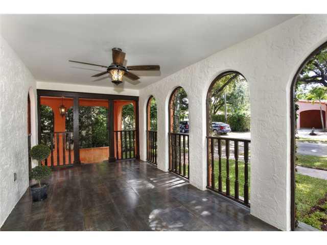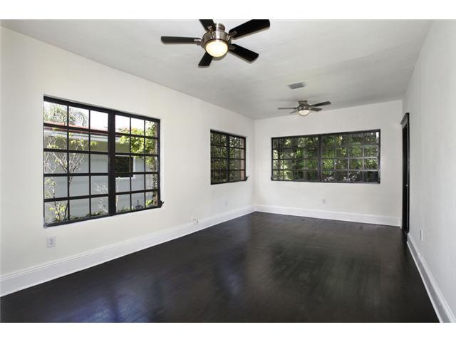 This charming Old Spanish home is located on a gated street in the North Gables. This 2 BR/1 BA home has been completely renovated and is move-in ready. This home features a covered entry porch, original wood floors throughout, a wood burning fireplace, c eiling fans, a new kitchen with solid birch cabinets, granite countertops, and stainless steel appliances. Enjoy entertaining family and friends in this home with French Doors opening to a cozy wood deck and backyard. Detached garage can be a bonus room.