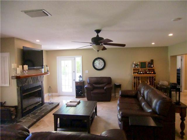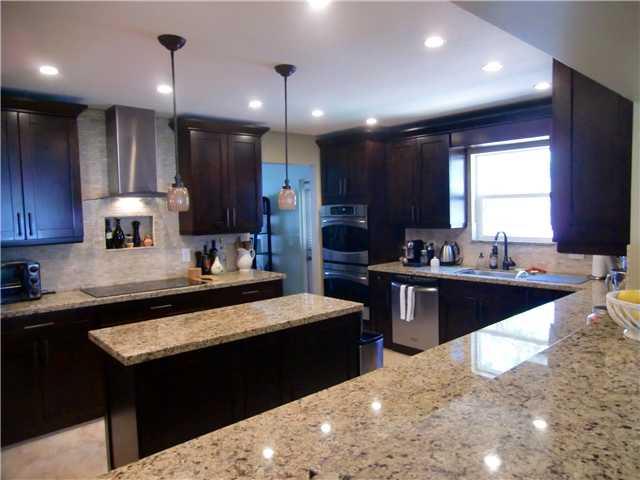 Fabulously updated home in beautiful Hollywood Hills! Phenomenal kitchen with granite counters, wood cabinets, stainless app. & stove hood,island, wine ref., & breakfast bar! Both bathrooms completely updated in high style. Travertine marble floors throu ghout living areas/high-quality wood laminate in bedrooms. Huge family room with working fireplace and French door to exterior. Fenced yard, garden, shed, access to alley for additional parking. Entire electrical system recently updated. A true beauty!