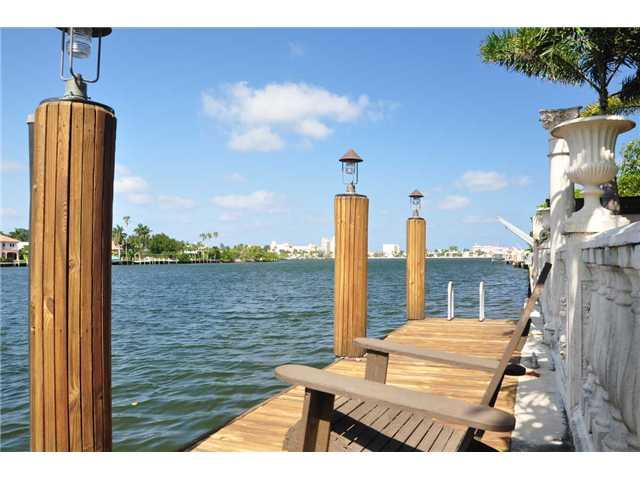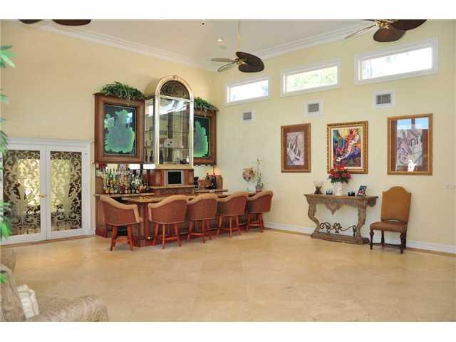 Elegant European-styled villa in Hollywood Lakes. Gorgeous corner property with 100' of waterfrontage & over 1/2 acre. Deep water with no fixed bridges. Living room features vaulted ceilings, marble floors, & custom-made fully equipped bar. State of the a rt kitchen with professional cooktop, granite countertops, stainless appliances. Large pool with fountain, surrounded by stone patio. Spectacular grounds with outdoor fireplace & sitting area, gazebo bar, brick pizza oven. 2-car garage & crescent driveway